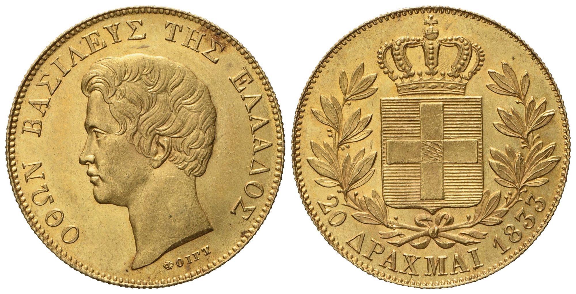 GRECIA. Ottone I (1831 - 1863). 20 dracme 1833. Au (5,76 g; 20,6 mm)