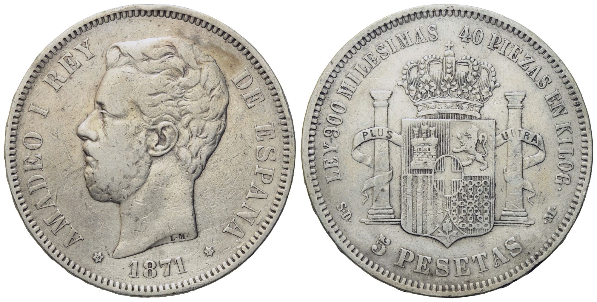 SPAGNA. Amedeo I (1871-1873). 5 pesetas 1871. Ag (24,95 g; 37 mm)