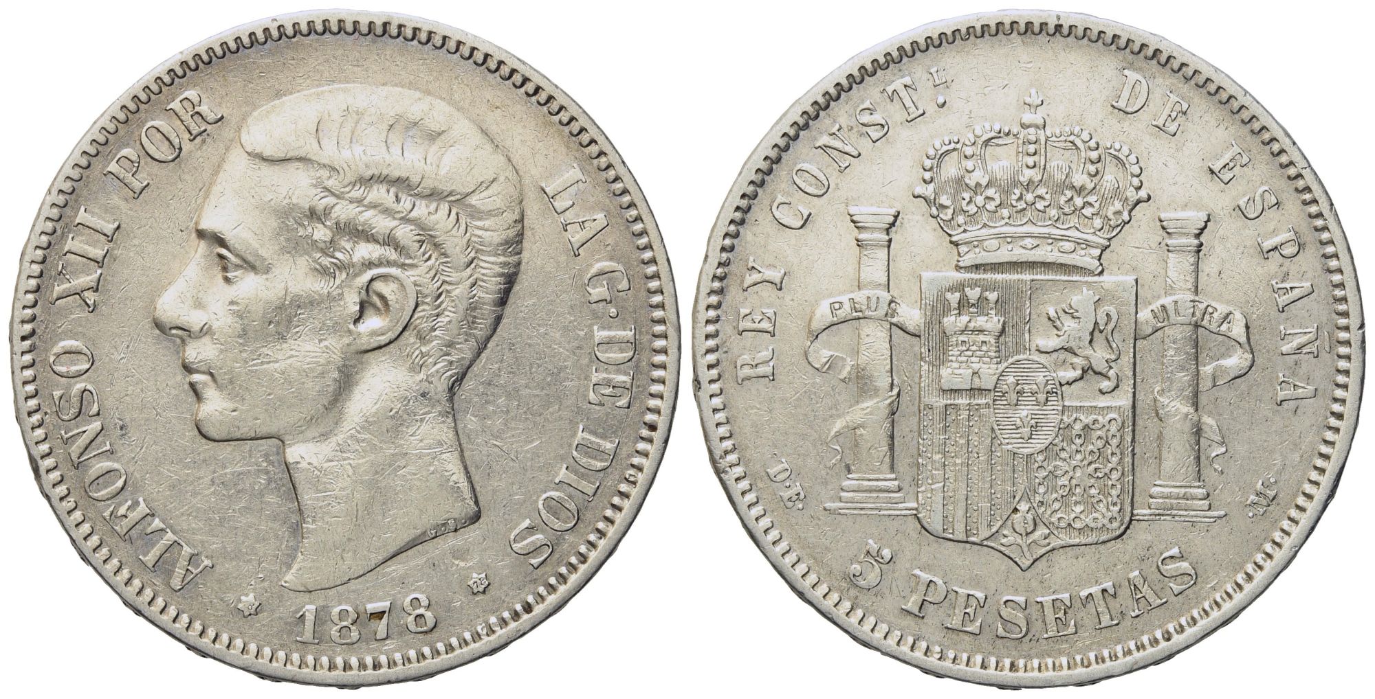 SPAGNA. Alfonso XII (1874-1889). 5 pesetas 1878. Ag (25,04 g; 37 mm)