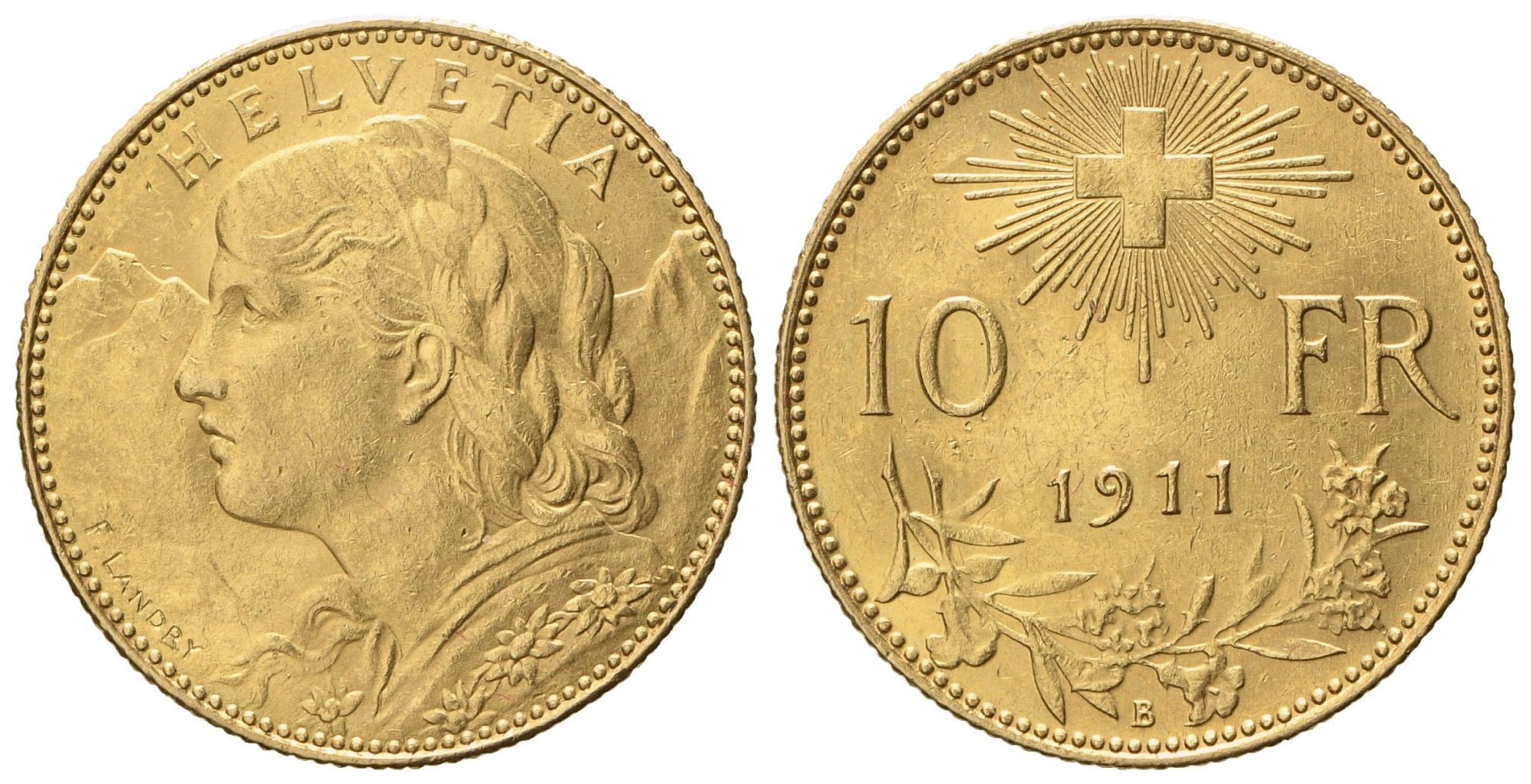 Lot 89 | SVIZZERA. 10 franchi 1911 B. Au 900 (3,21 g, 18,6 mm)
