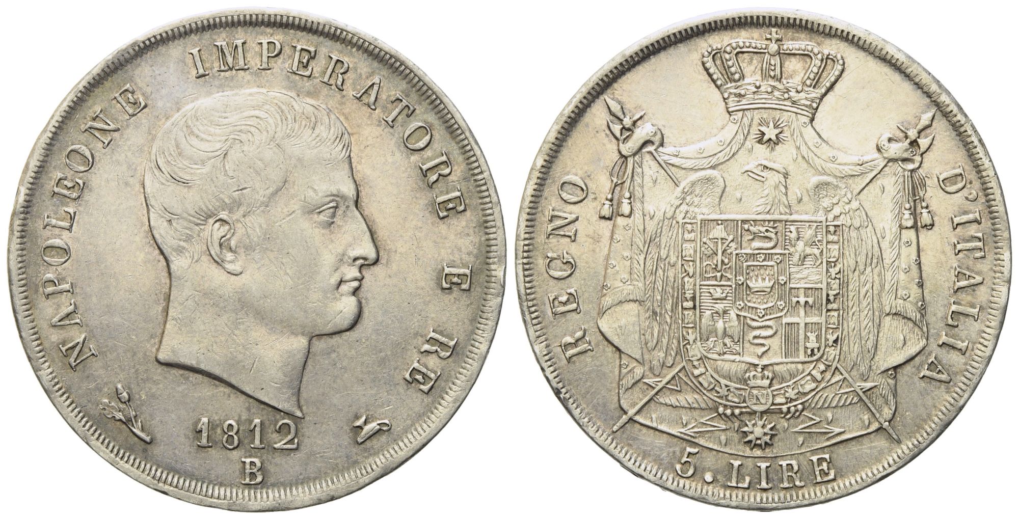 Lot 99 | BOLOGNA. Regno d'Italia. Napoleone I (1805-1814). 5 lire 1812. Ag (25 g; 38 mm)