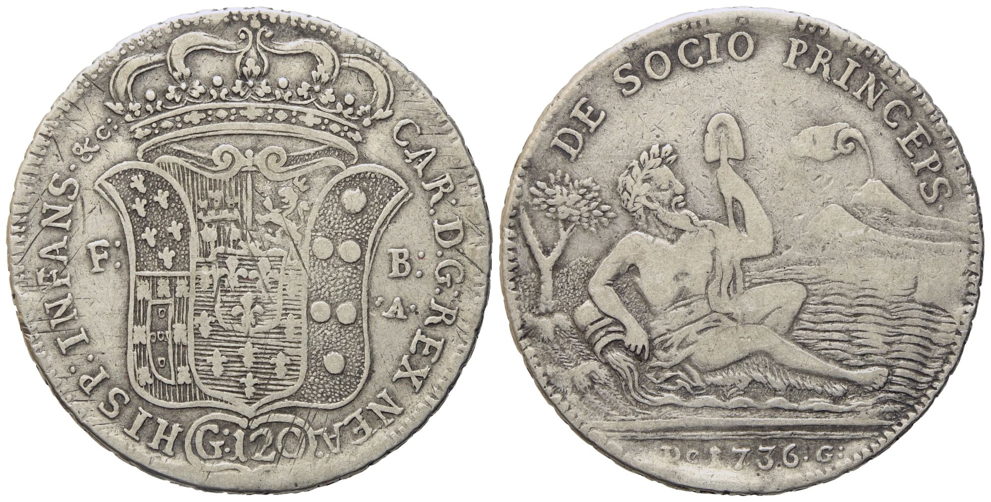 NAPOLI. Regno di Napoli. Carlo di Borbone (1734-1759). Piastra da 120 grana 1736 "De G". Ag (25,05 g; 39,7 mm)