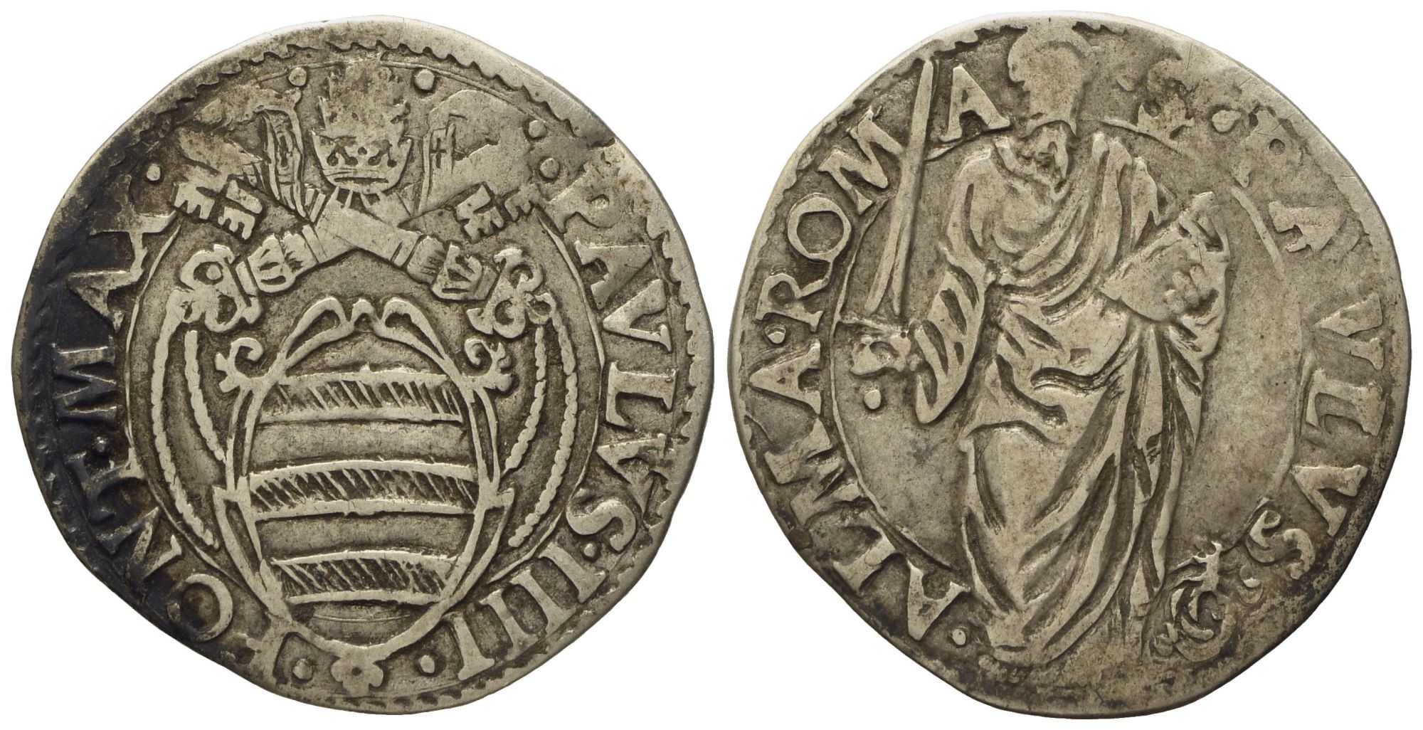 STATO PONTIFICIO. Roma. Paolo IV (1555 - 1559). Giulio "San Paolo". Ag (3,03 g; 26,8 mm)