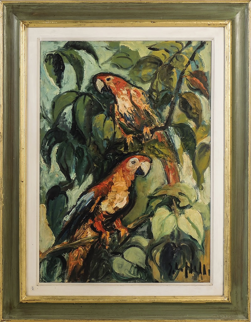 EMANUELE CAPPELLO Pappagalli - Parrots olio su tela - oil on canvas, firmato, in cornice cm 70x50