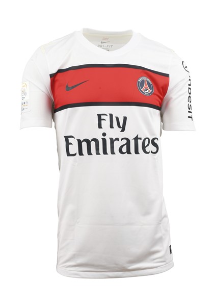 Maglia Nr.13 del Paris St.Germain preparata per la quarta giornata del campionato francese di Ligue 1 contro il LOSC Lille del 2 settembre 2012. Il giocatore disputò tutti i 90 minuti dell'incontro. Marca Nike. Modello DRI-FIT. Prodotta in Thailandia. Taglia L. Maglia preparata per la gara. Paris St.Germain No.13 jersey issued for the fourth game of the French Ligue 1 championship vs LOSC Lille on September 2, 2012. The player played the full 90 minutes of the match. Brand Nike. Model DRI-FIT. Made in Thailand. Size L. Match issued jersey.