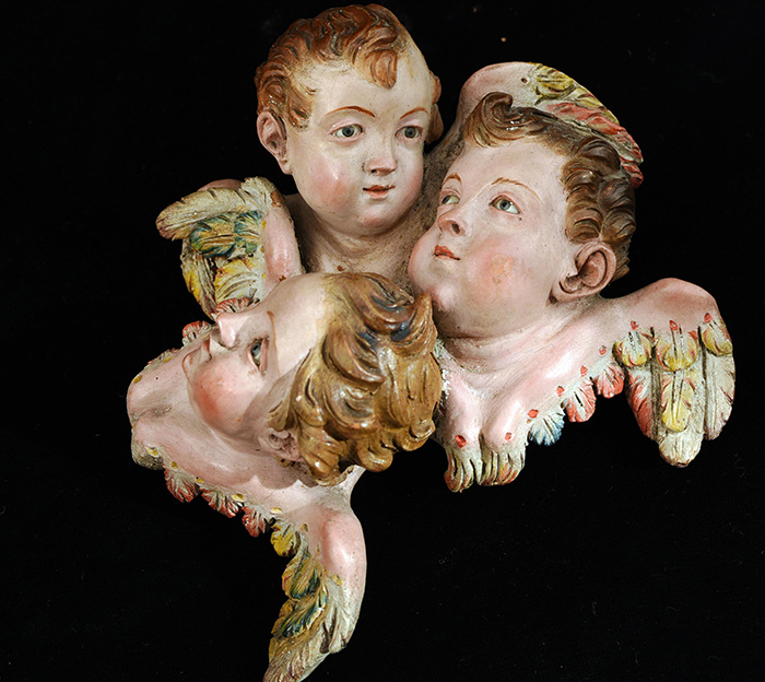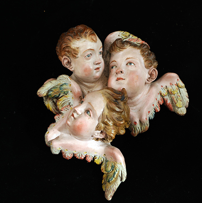 Trittico di cherubini in terracotta policroma h cm 13 Provenienza: Coll. Mancini, Napoli Napoli XVIII - XIX secolo