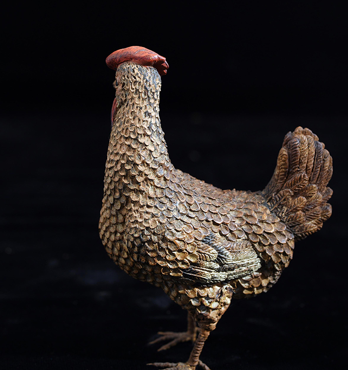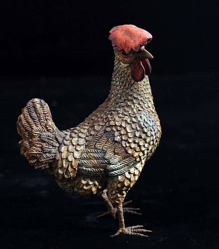 Gallina con collo in torsione in terracotta policroma h. cm 9,5x7 Provenienza: Coll. Mancini, Napoli Napoli XVIII-XIX secolo
