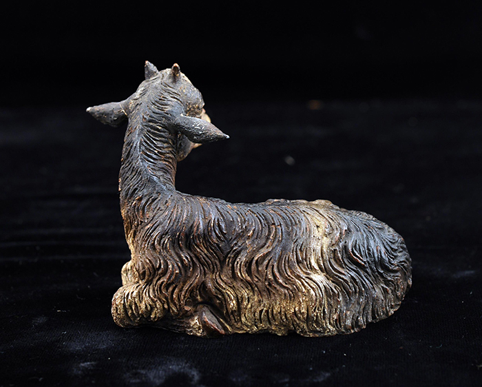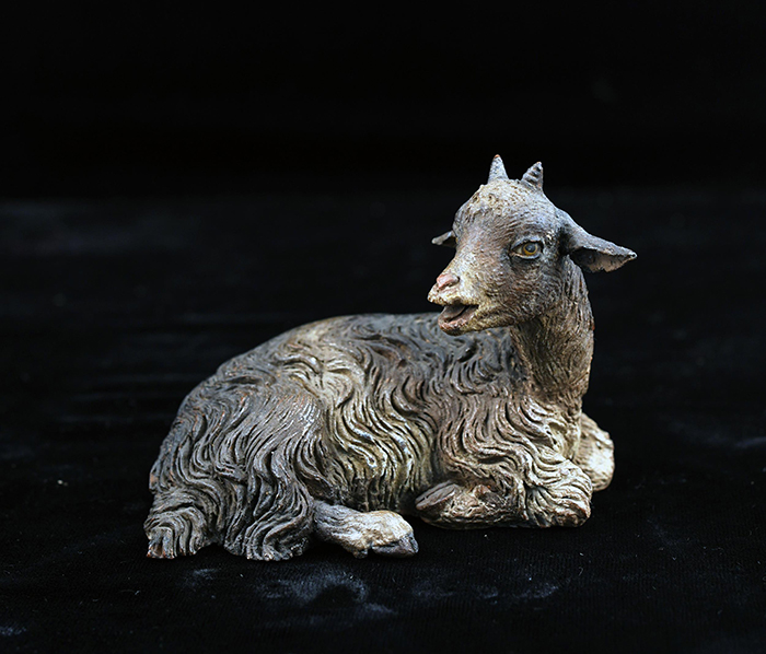 Capretta accosciata terracotta policroma cm 9x7 Napoli XVIII - XIX secolo