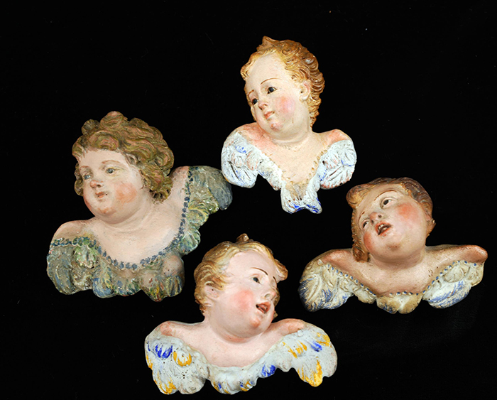 Gruppo di quattro cherubini in terracotta policroma h. cm 7x5,5