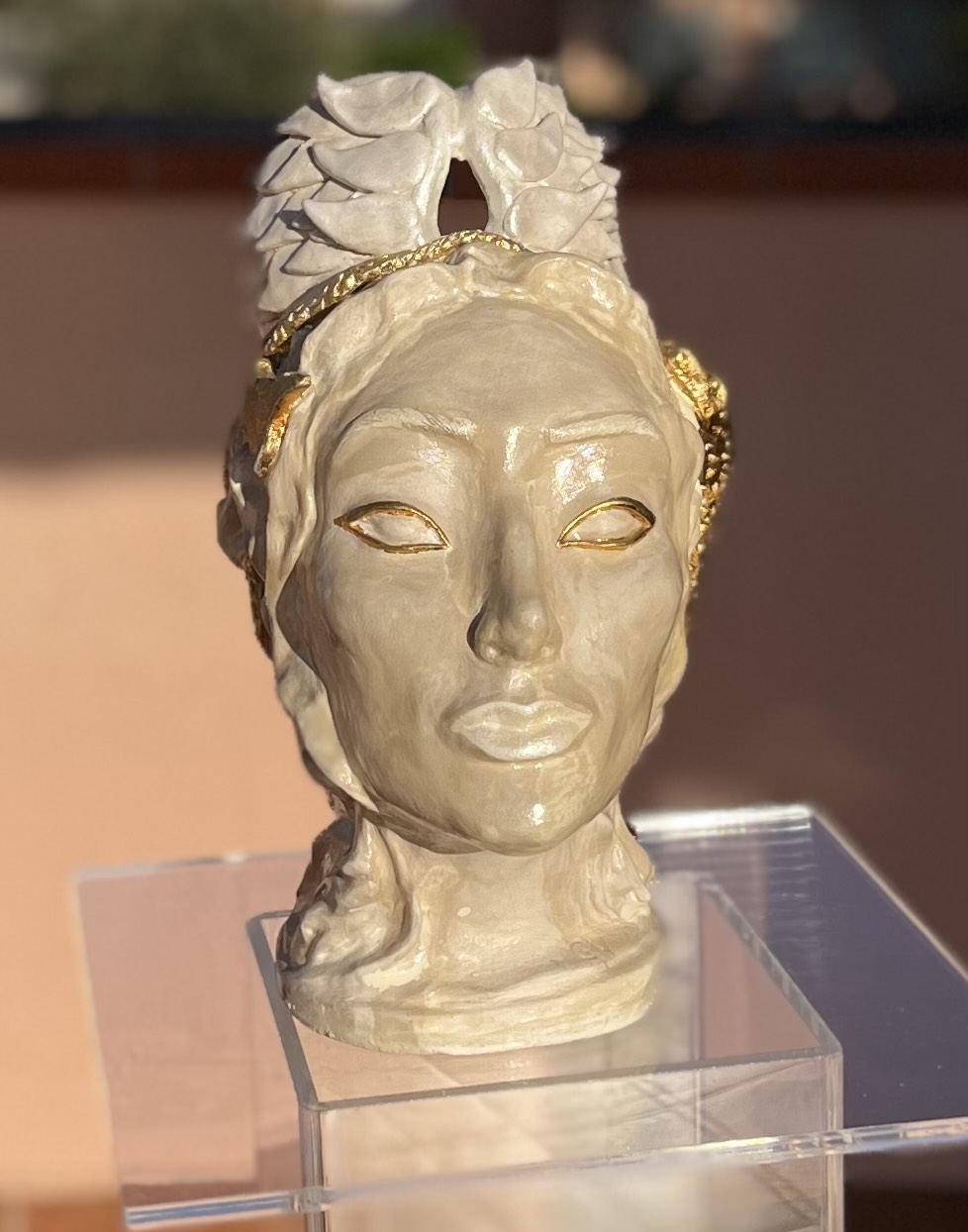 MATERIALE: argilla bianca, foglia d’oro finta, madreperla