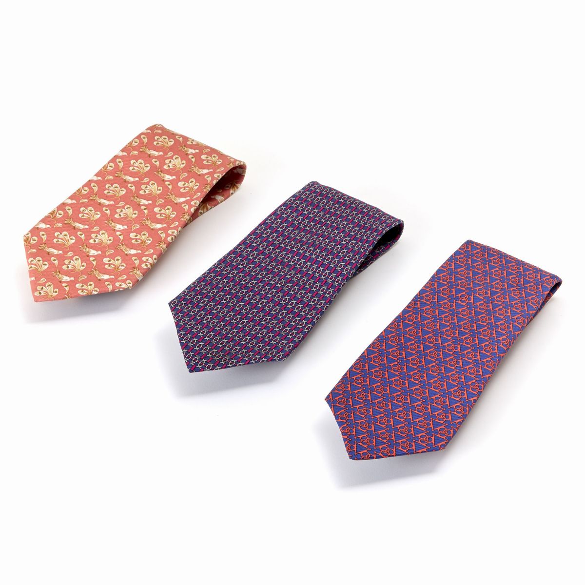 Lotto composto da tre cravatte Hermès vintage in seta. Condizioni molto buone.