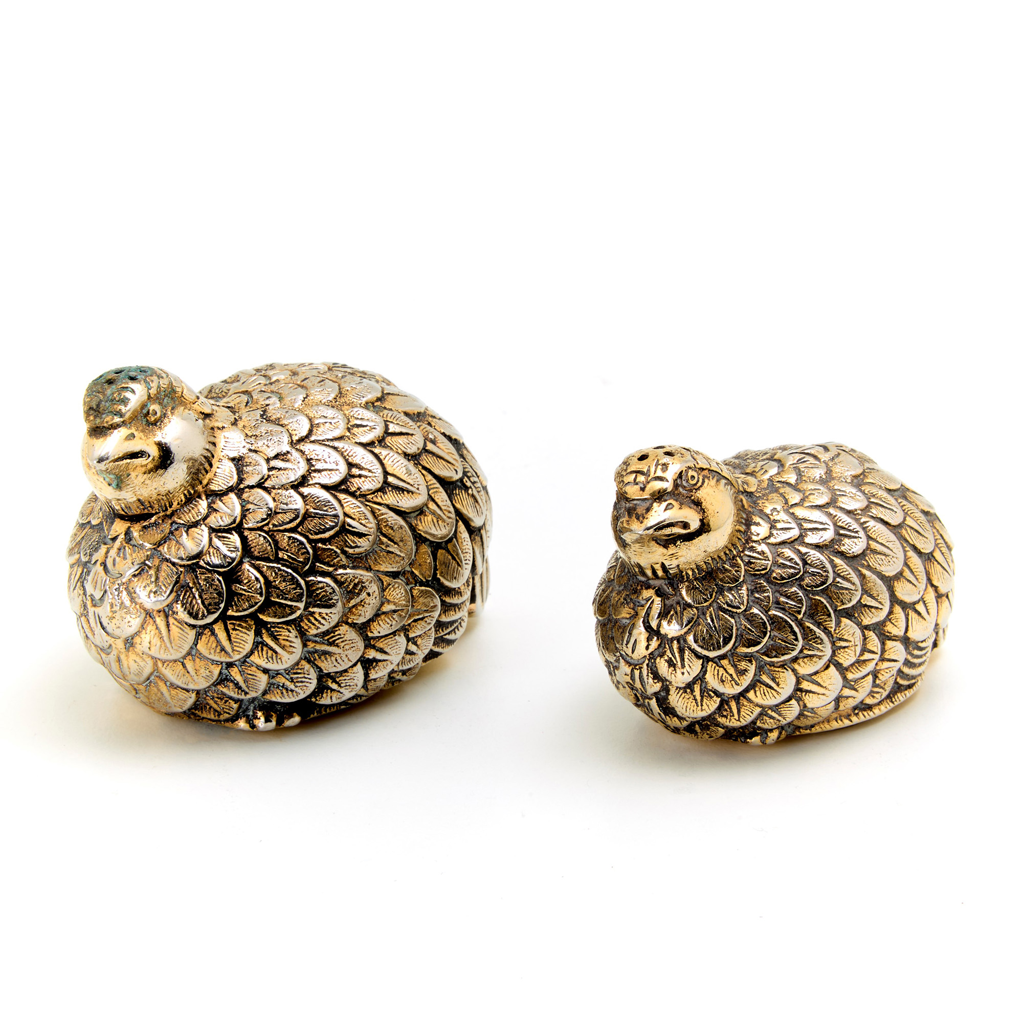 Gucci quails shape salt and pepper in silver metal, 60's.