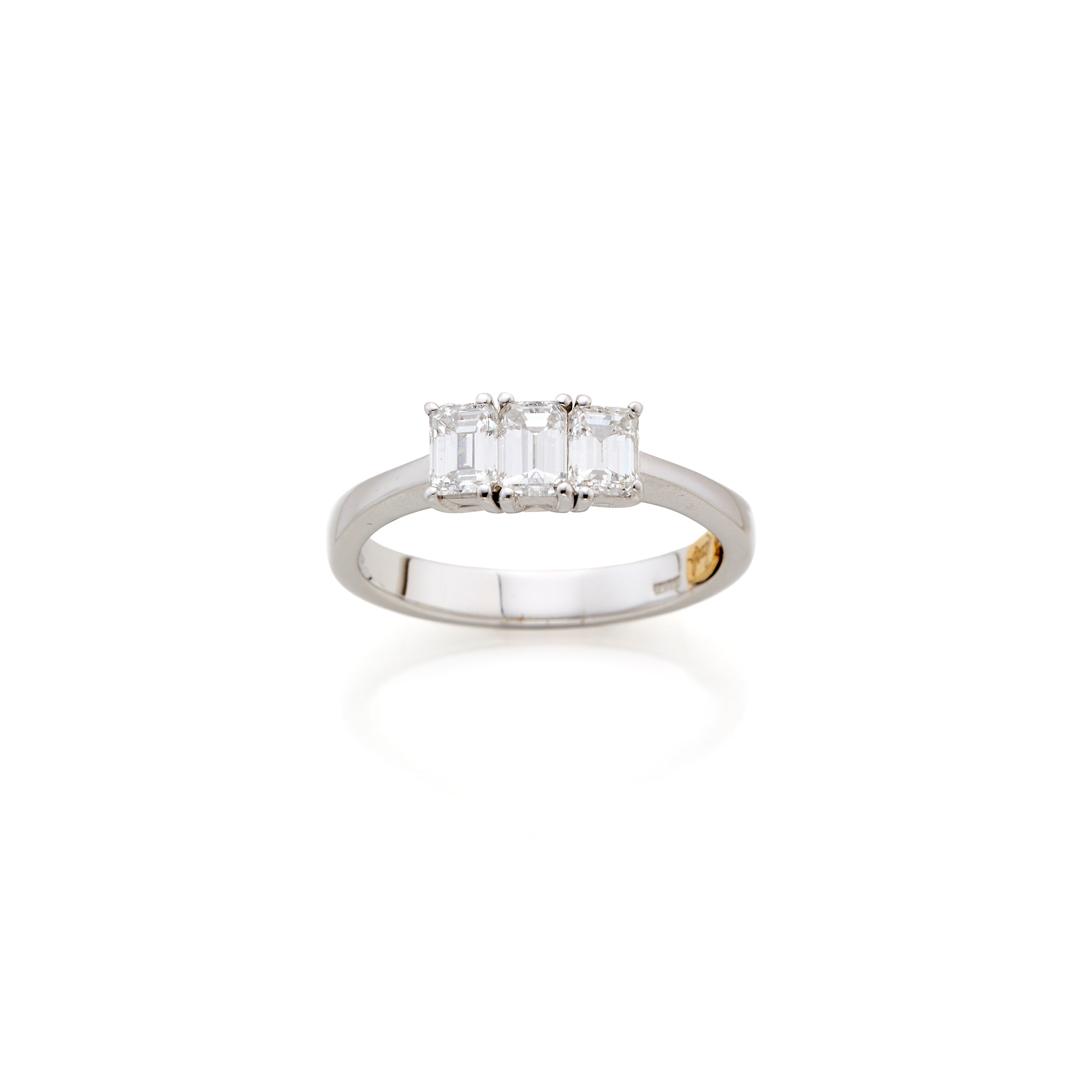 Anello trilogy Recarlo in oro bianco 18 Kt rifinito da diamanti ottagonali per complessivi 1 ct circa.
