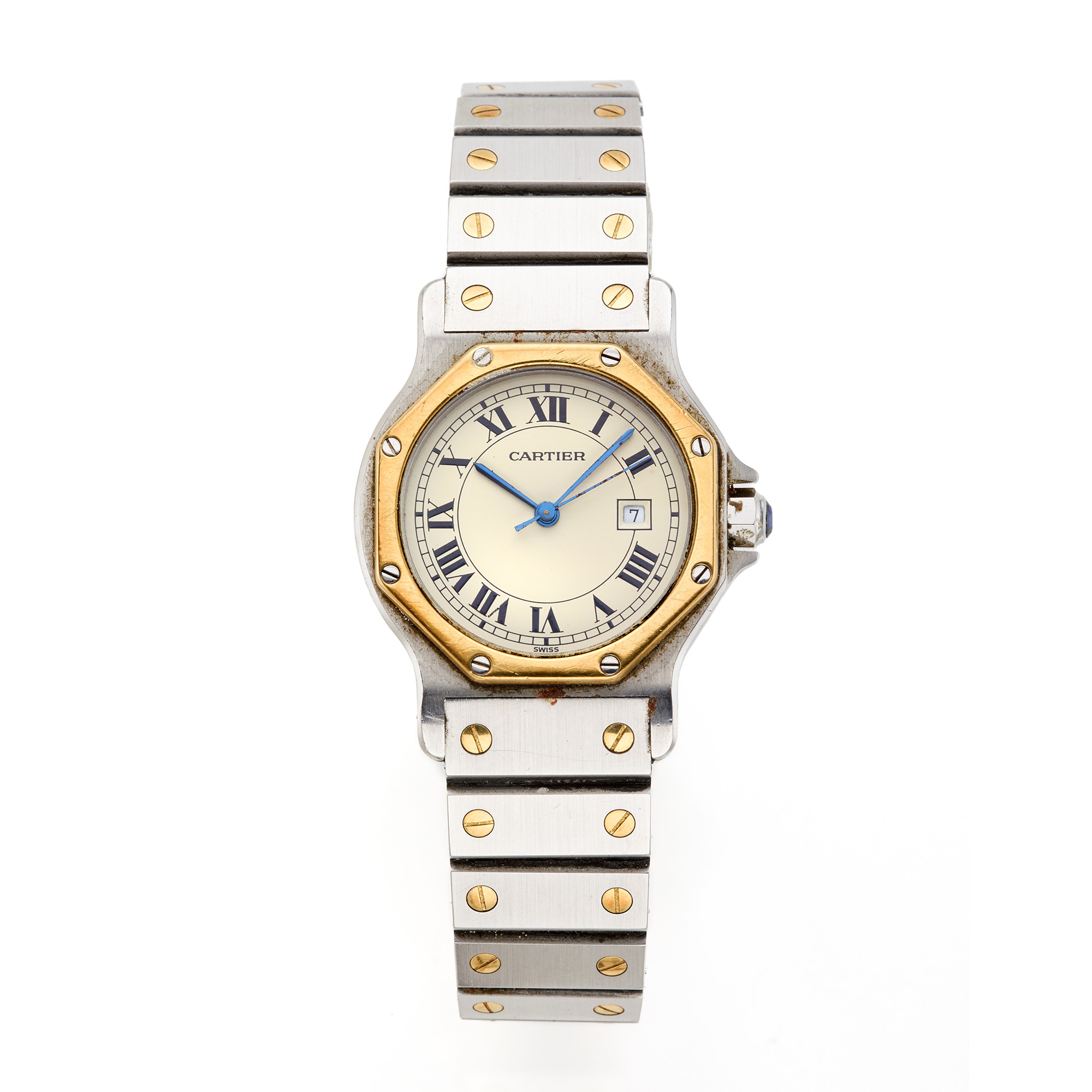 Cartier Santos Ronde. Cassa e bracciale in acciaio e oro. Movimento meccanico a carica automatica.