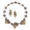 Demi parure in argento e argento dorato composta da collier e orecchini decorati da motivo a tralci di vite rifinito con diamanti mezza rosetta e perle con sfumatura gialla.
