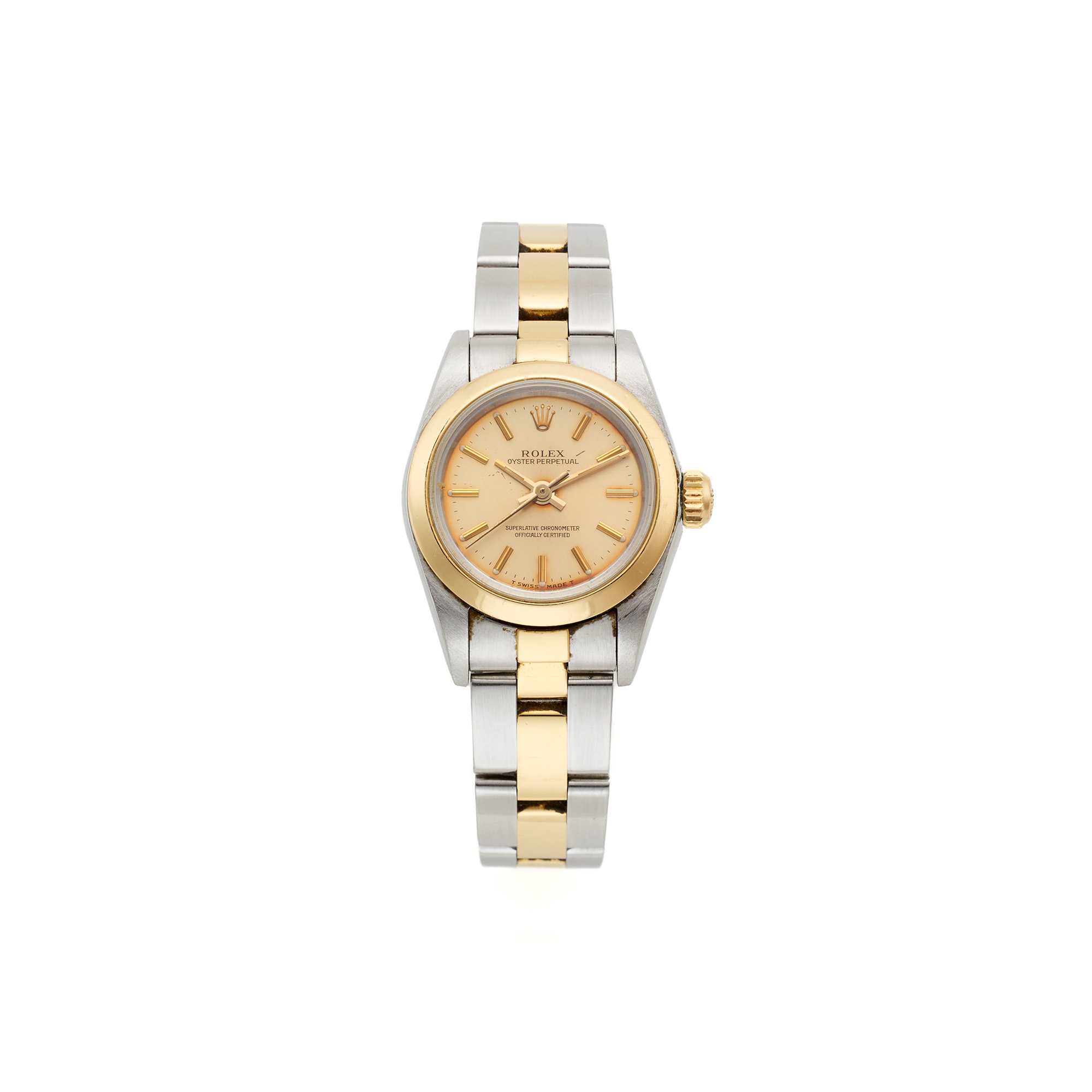 Rolex Oyster Perpetual Lady with stainless steel and yellow gold case and bracelet. Self winding movement. Good conditions.