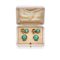 Lot consisting of 18 Kt yellow gold cufflinks and earrings with oval cabochon turquoises totalling approx. 13.50 ct and rose cut diamonds. Within Codevilla Genova case.