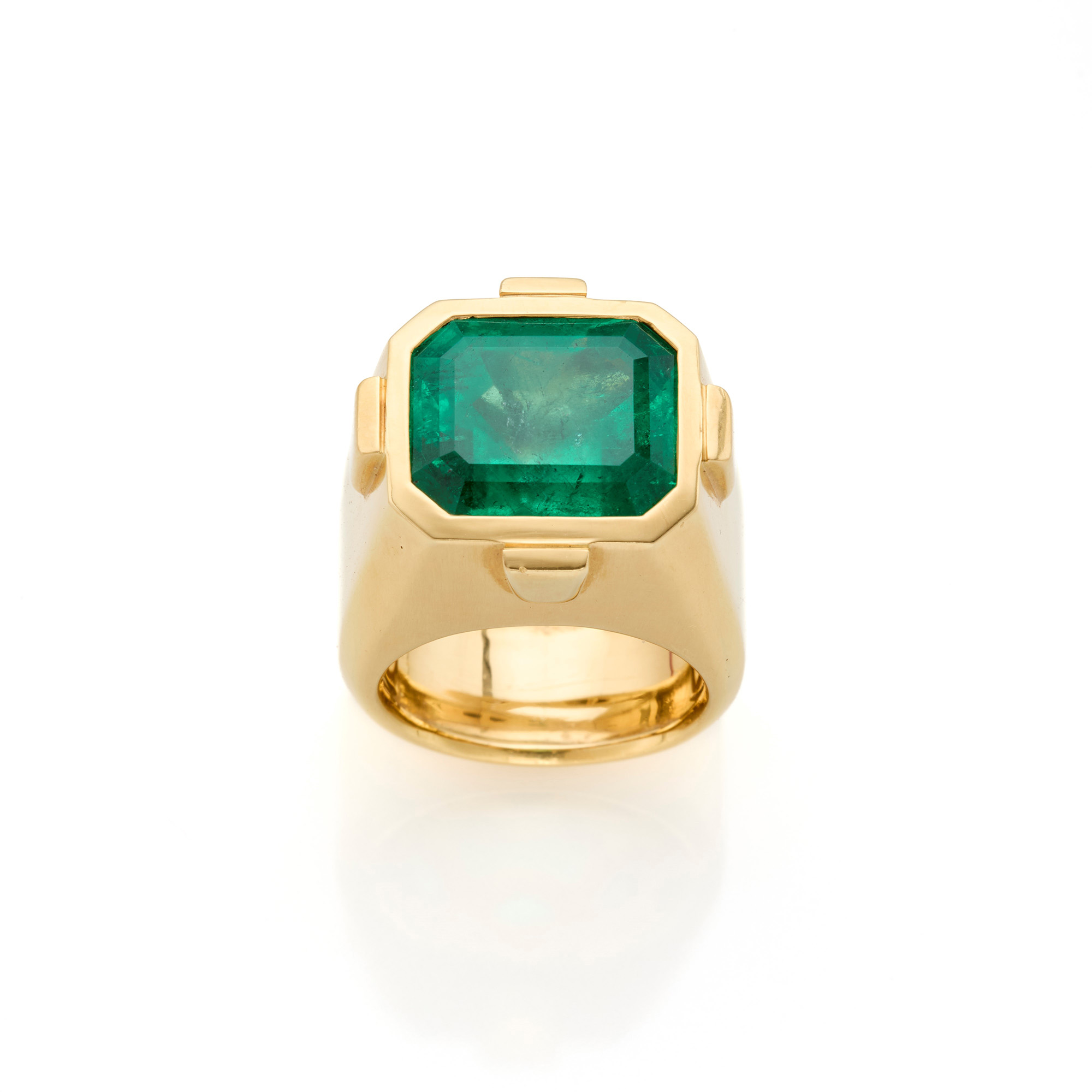 18 Kt yellow gold ring with octagonal emerald weighing 13,03 ct.