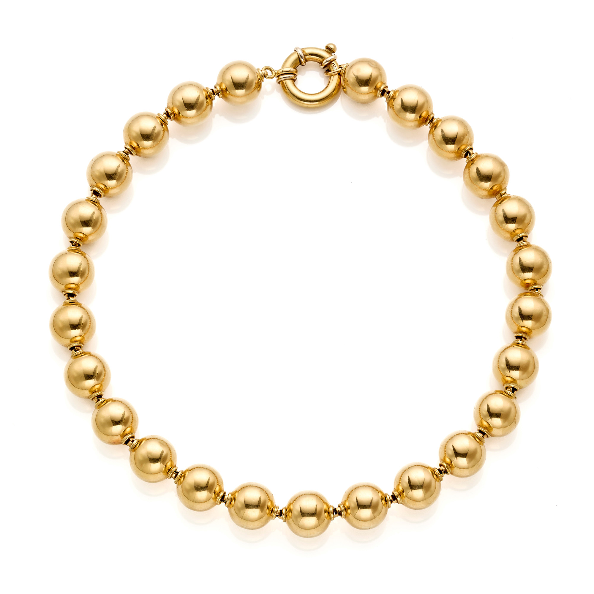 Collana a sfere in oro giallo e bianco 18 Kt di circa 14 mm.