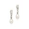 Platinum pendant earrings set with baguette and round diamonds totalling approx. 1,40 ct terminated by two white cultured drop pearls measuring approx. 10x14 mm.