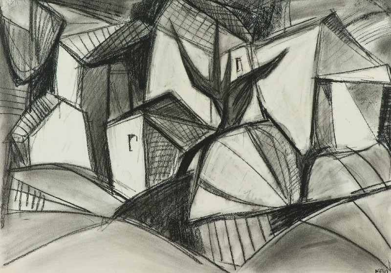 Gualtiero Nativi (Pistoia 1921 - Greve in Chianti (Fi) 1999) PAESAGGIO, 1947 Matita grassa su carta, cm. 50x70 Firmato in basso a destra. Esposizione: "Gualtiero Nativi, La purezza dell'astrattismo", 14 Maggio - 6 Giugno 2010, Castel Fiorentino, a cura di Marco Moretti e Giuliano Nozzoli,pubblicato sul catalogo della mostra, pag. 16. Autentica dell'Archivio Gualtiero Nativi su foto, con timbro a secco, firma "Berto Nativi" e Archivio n° D4732.
