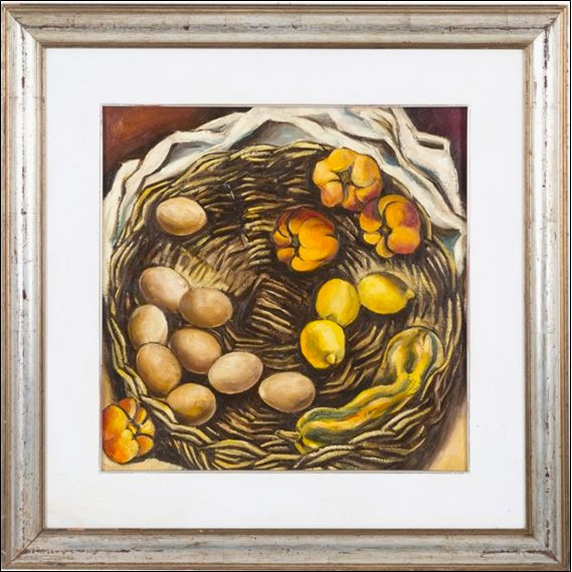 RAINALDI OLIVIERO Caramanico Terme 1956 "Natura morta" Olio su tela cm 50x50. Firmato sul fronte in basso a destra. Sul retro firma e timbro di provenienza.