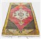 PICCOLO TAPPETO CAUCASICO - SMALL CAUCASIAN RUG antica manifattura, fondo bordeaux, campo con medaglione e motivi geometrici nei toni del beige, giallo e nero, alcuni difetti cm 185x95