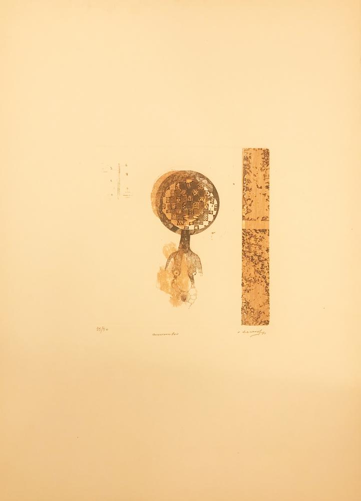 Acquaforte acquatinta a due colori, mm 254x245, su foglio cm 70x50; es. 35/50