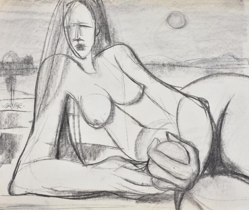 Lot 70 | GIANBAR (Gianni Baretta) DONNA AL CHIARO DI LUNA carboncino su cartoncino, cm...