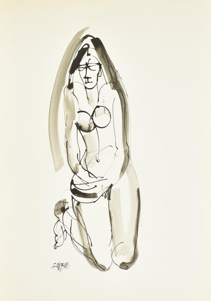 GIANBAR (Gianni Baretta) DONNA IN GINOCCHIO china acquarellata su cartoncino,...