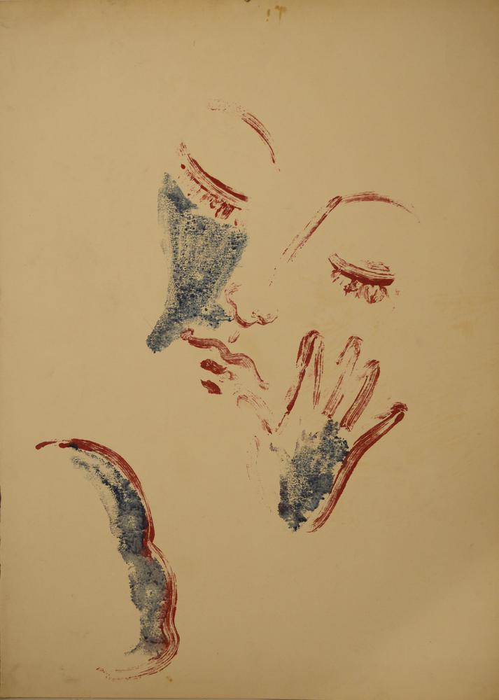 Ignoto VOLTO FEMMINILE acrilico su cartoncino, cm 70x50 sul retro: bozzetto...