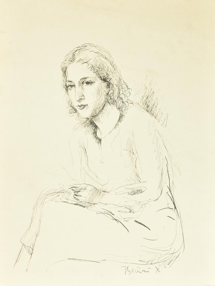 Ignoto DONNA ASSISA penna su carta vergellata cm 32x24 firma