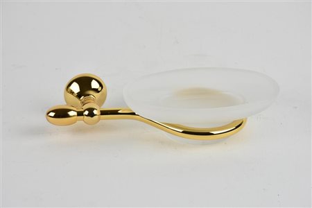 PORTA SAPONE A MURO in metallo dorato e vetro opaco, cm 20