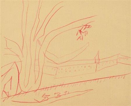 Osvaldo Licini (Monte Vidon Corrado (Ap) 1894 - 1958) PAESAGGIO Matita su carta, cm. 22x27 Certificato di Provenienza della collezione Celi Hellstrom Caterina, su foto.