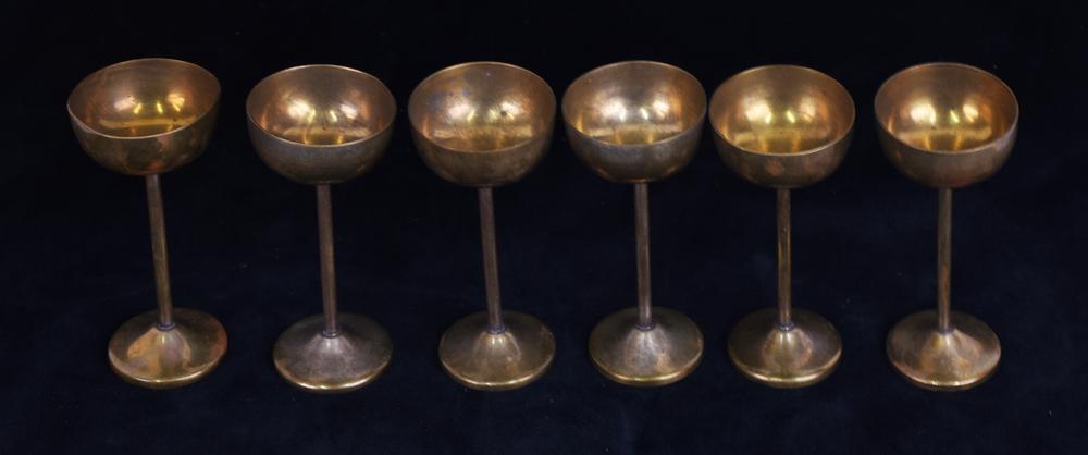 Lot 159 | LOTTO DI 6 BICCHIERI IN OTTONE da liquore anni '50 h 8 cm Segni d'usura