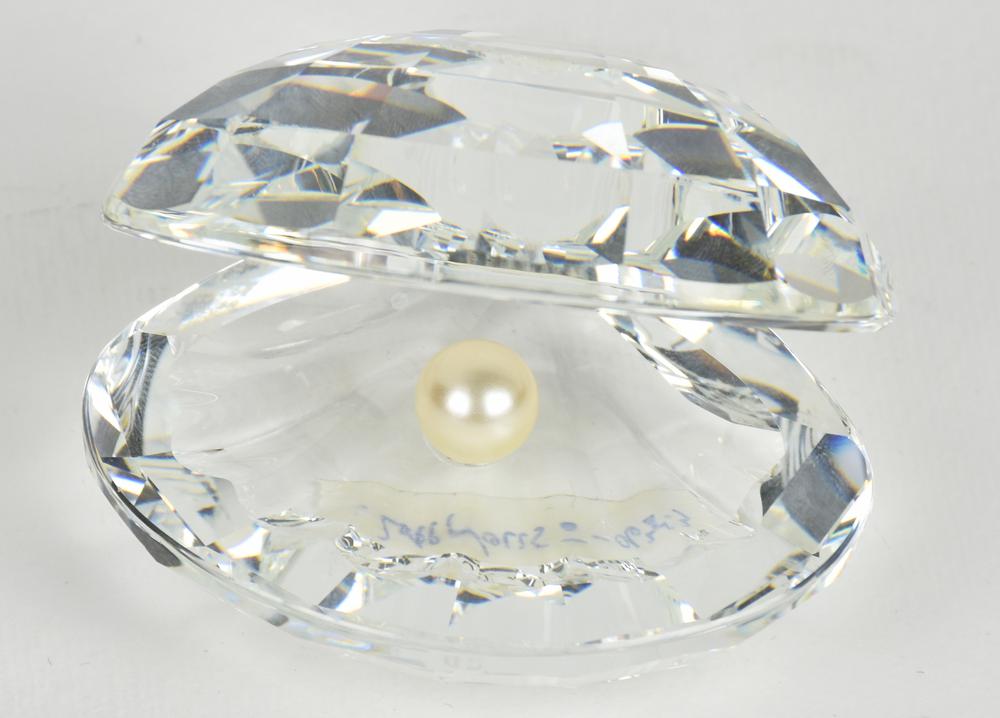 SOPRAMMOBILE IN CRISTALLO, modellato a conchiglia aperta con perla all'interno, h cm 4