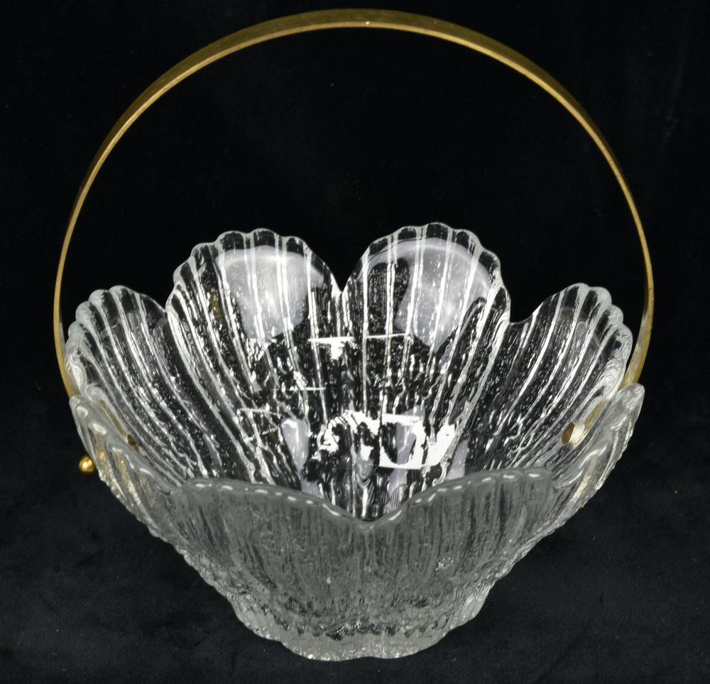 CESTINO PORTA ZUCCHERO in vetro con manico in ottone Italia, anni '60 h cm 14...