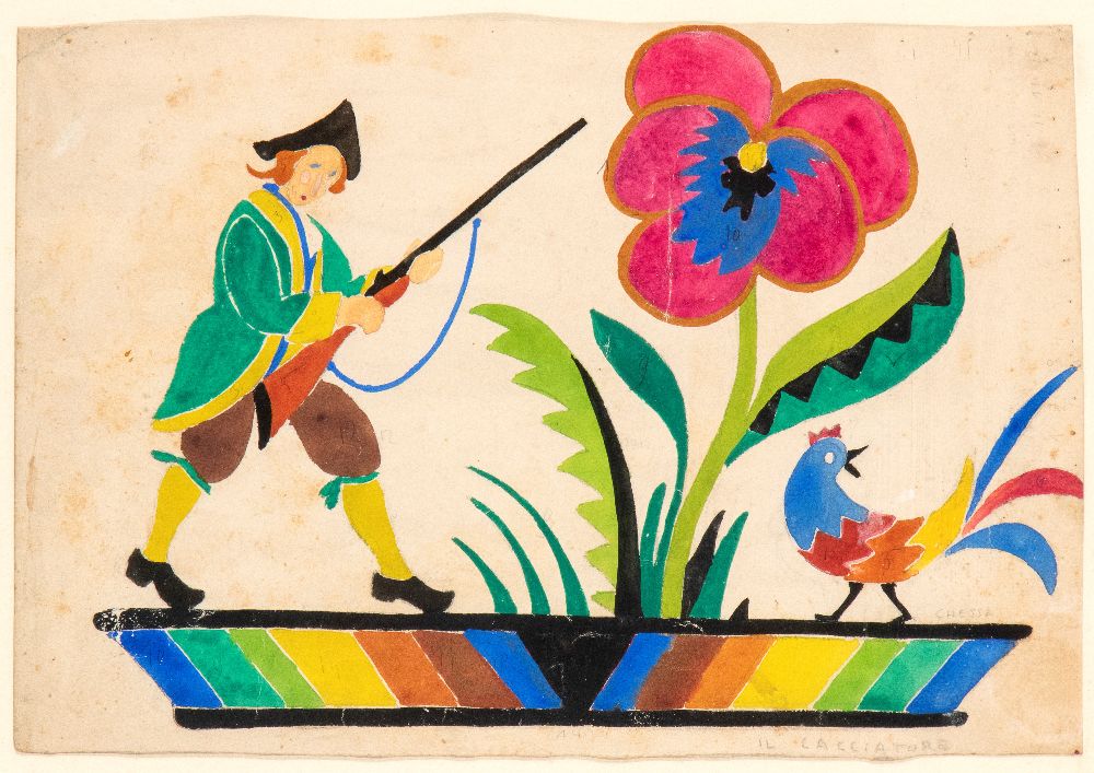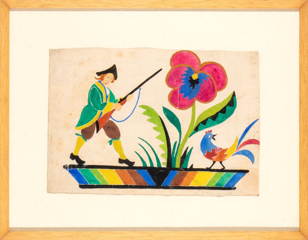 GIGI CHESSA (Torino 1898-1935), Bozzetto per ceramica, Il Cacciatore, Anni 1930