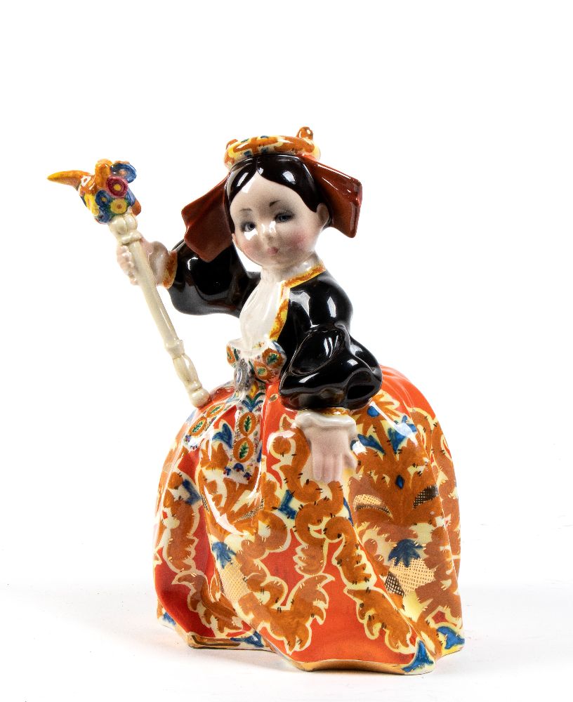Buone condizioni, minima mancanza sul cappello e piccolo restauro alla piuma del mazzo di fiori