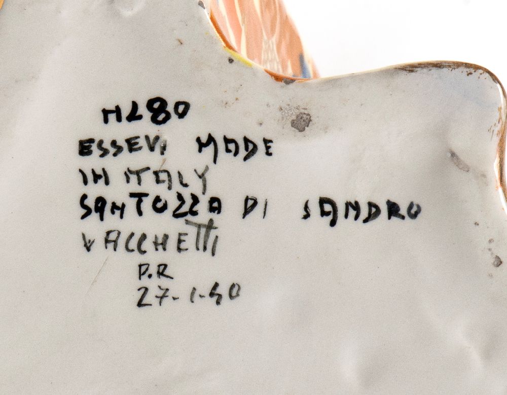 Marchio di fabbrica, numero di serie e firma di S. Vacchetti con la data 27/01/40 alla base in vernice nera sotto smalto