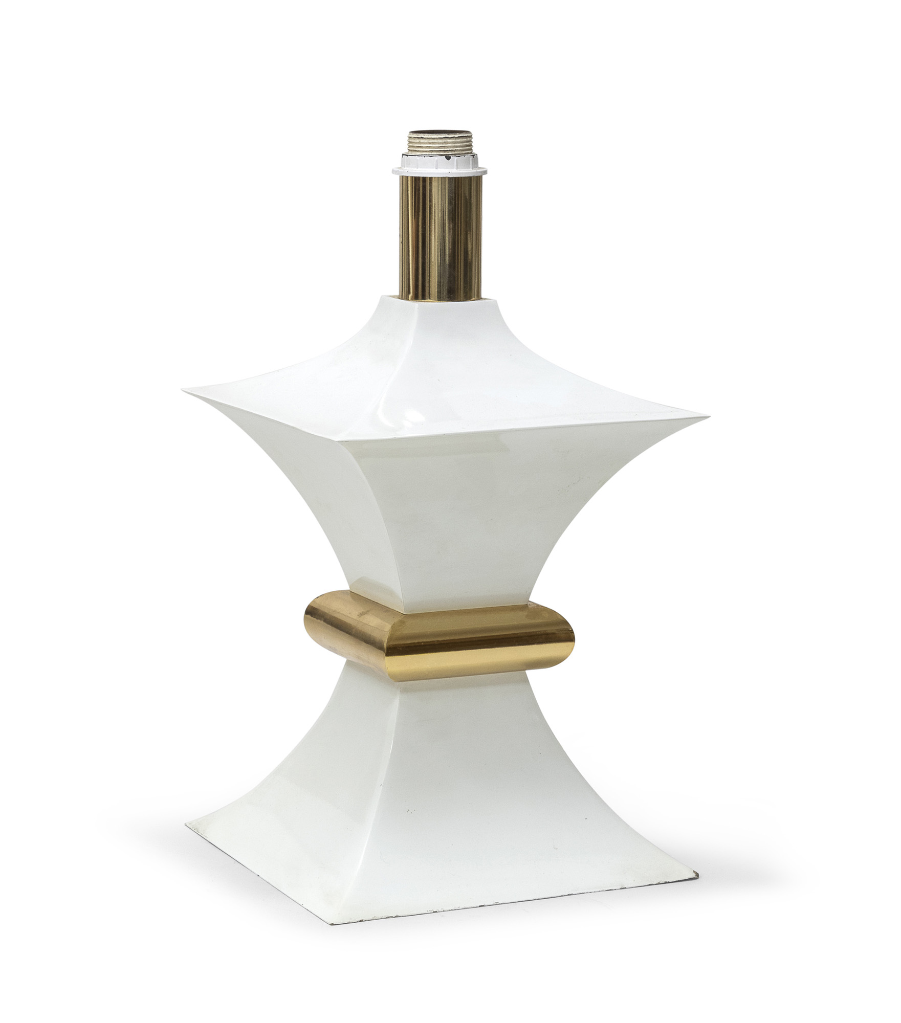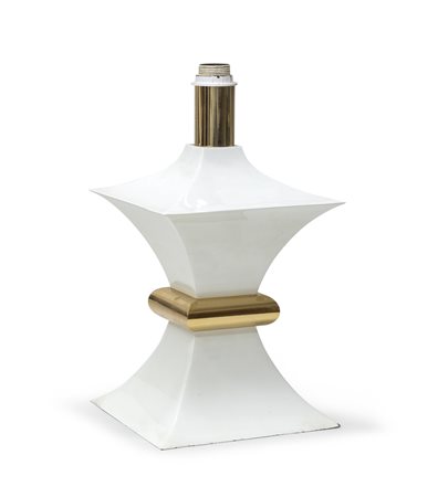 in metallo ottonato e laccato avorio, con corpo composto da elementi quadrangolari speculari.