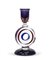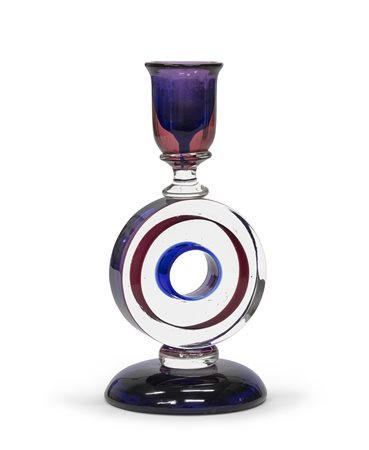 in vetro sommerso trasparente, viola e blu, con corpo ad anello.