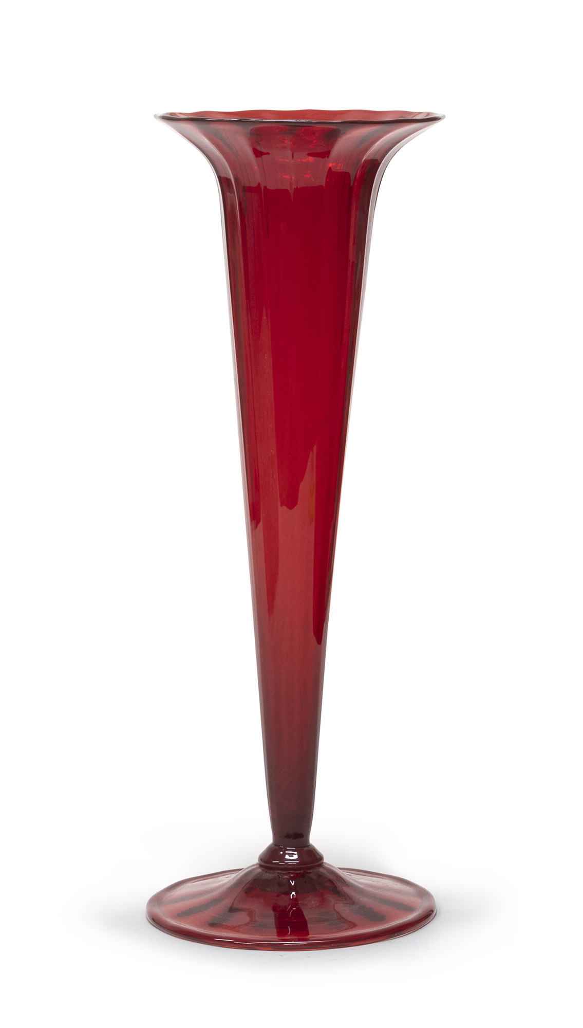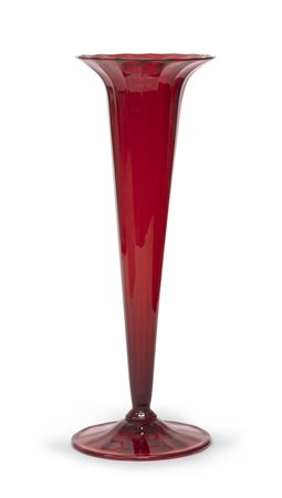 con alto corpo costolato a fondo trasparente rosso e largo piede circolare.