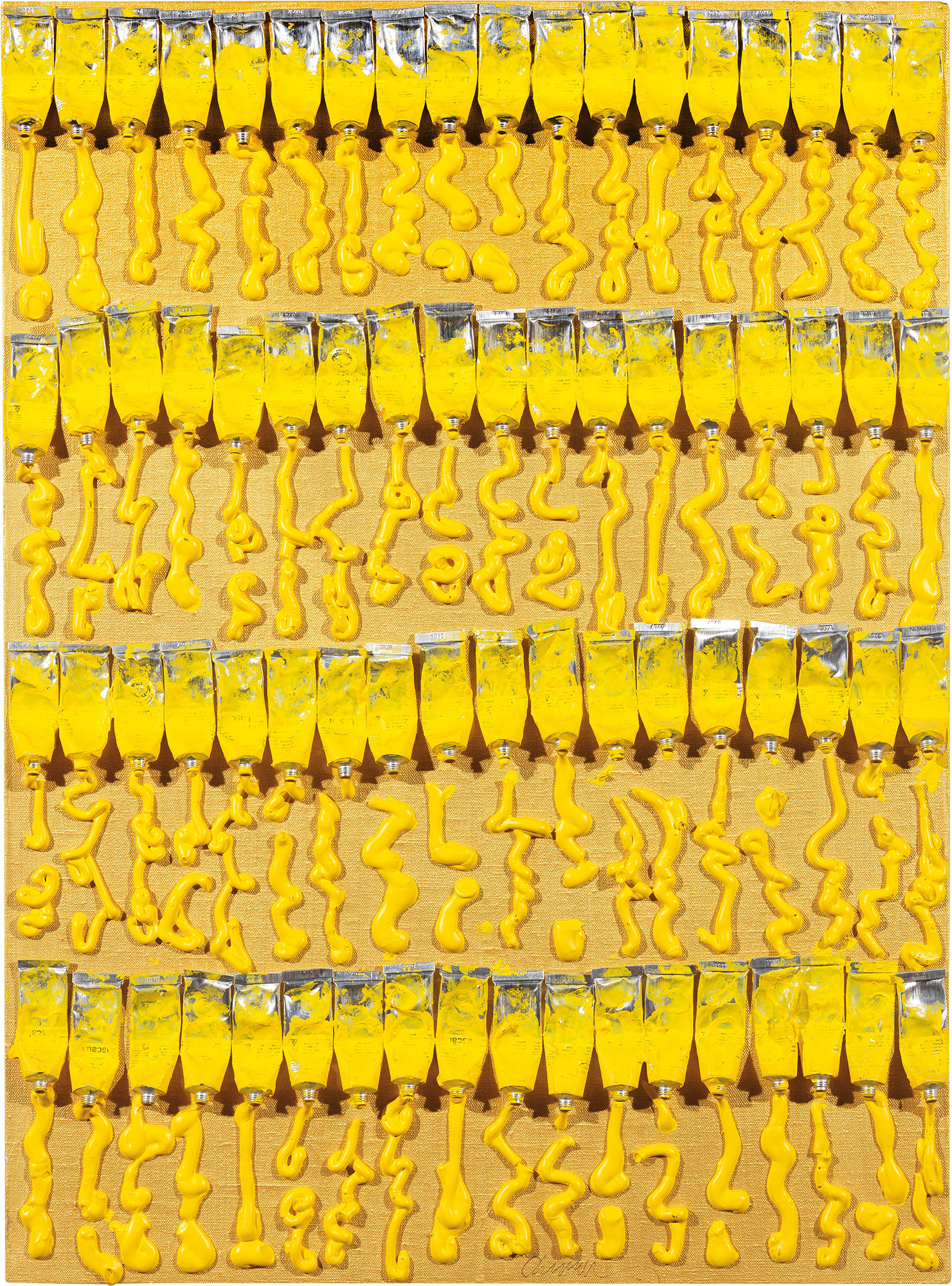 Arman (Nizza, 1928 - 2005) Senza titolo, 1998 Tubetti di colore cadmio su...