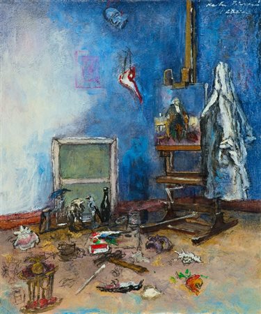 Walter Piacesi (Ascoli Piceno 1929) ANGOLO DELL'ATELIER Olio su tavola, cm....