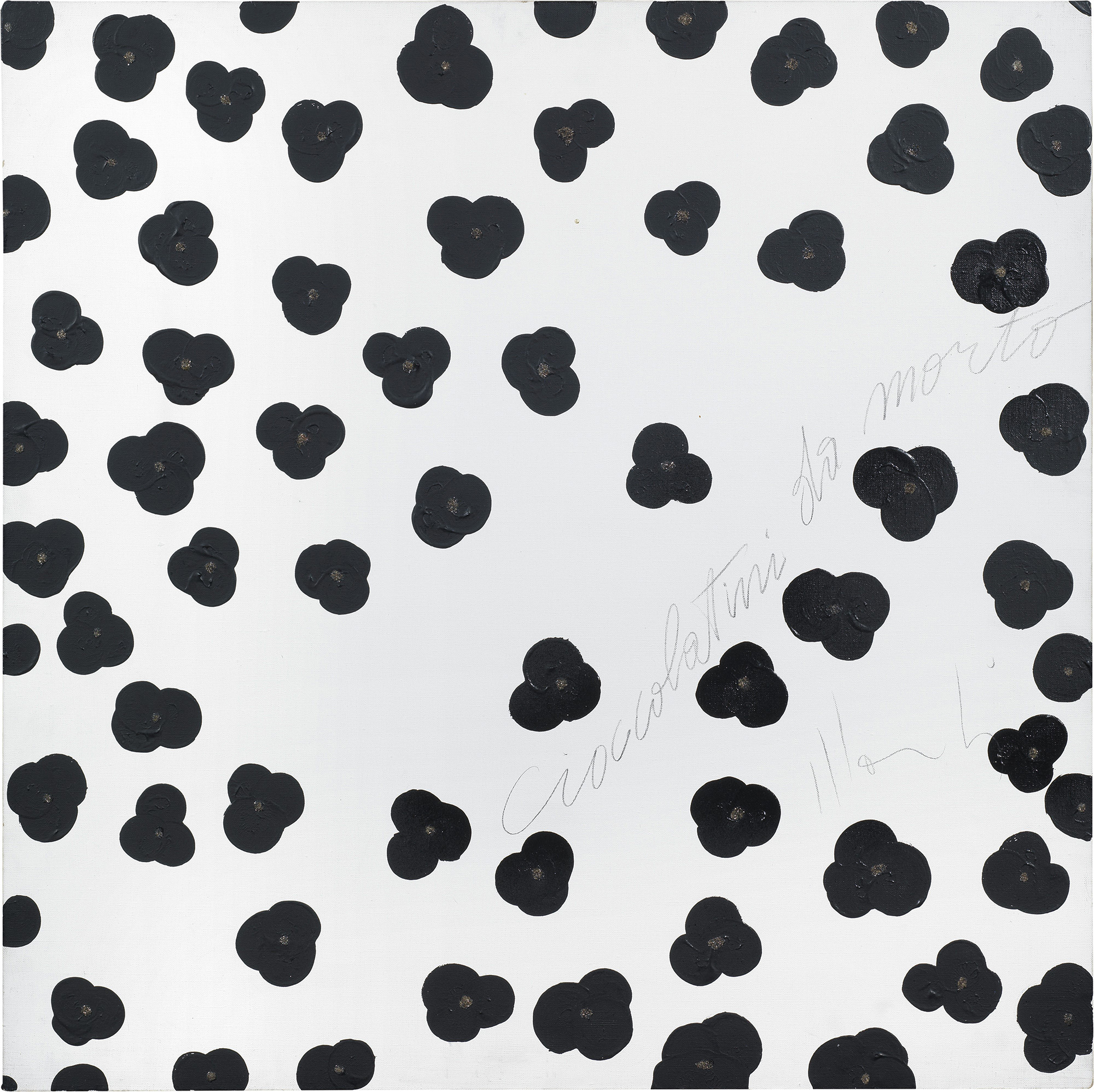 Aldo Mondino (Torino, 1939 - 2005) Cioccolatini da morto, 1965 Olio e tecnica...