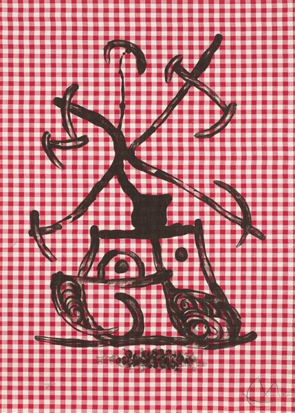 Joan Miró "La Dame aux Damiers" 1969 litografia a colori su tela su carta cm 85x