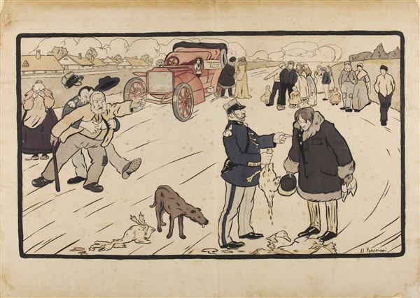 Umberto Boccioni "L'incidente" 1906 litografia, colori all'anilina cm 53,5x74,5