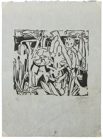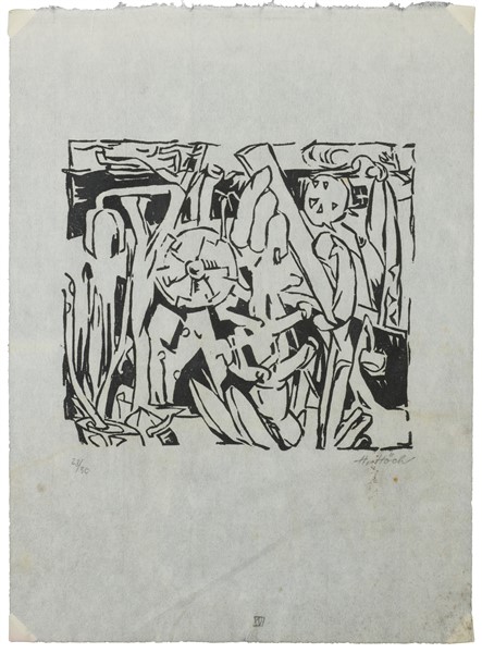 Hannah Höch "Überwuchert" 1918 linoleumgrafia su carta Giappone cm 31x22,5 firma