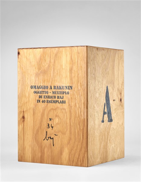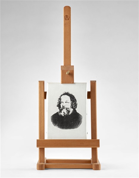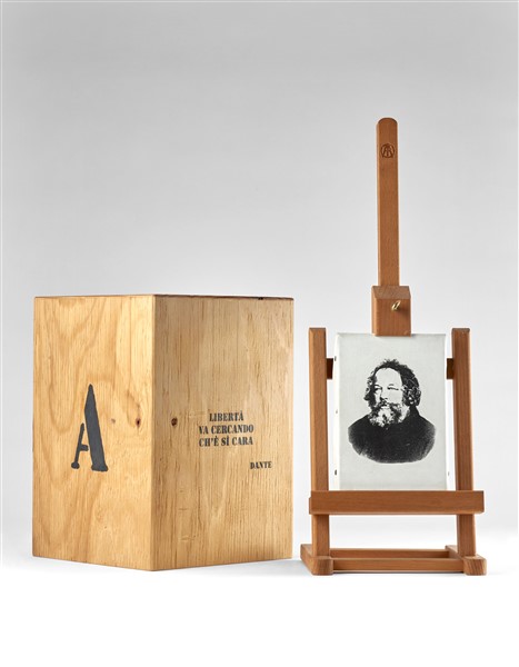 Enrico Baj "Omaggio a Bakunin" 1996 multiplo - cavalletto, tela e collage h cm 4